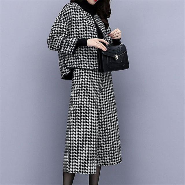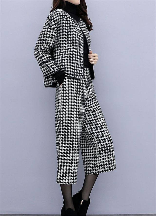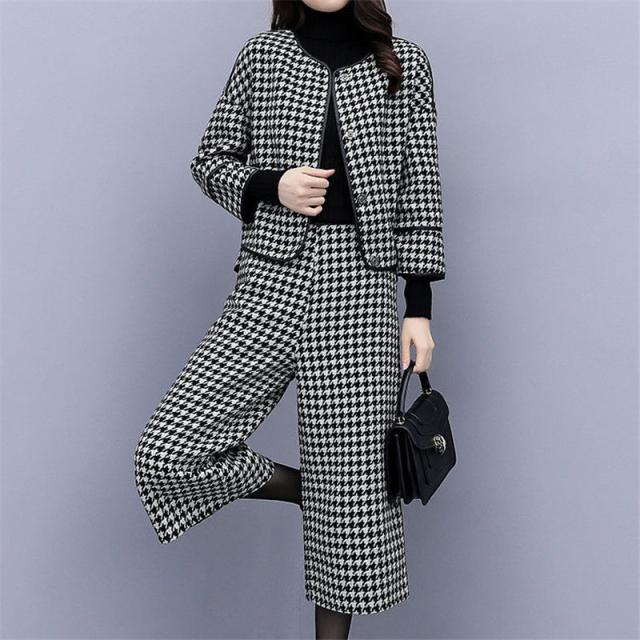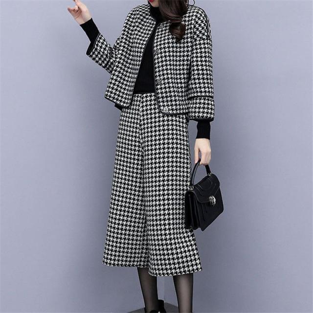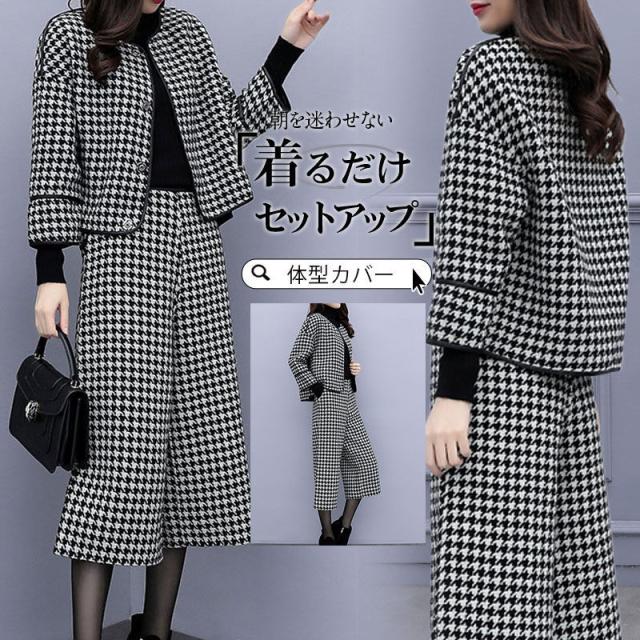 【水曜日まで!10%クーポン配布中】 セットアップ レディース フォーマル 春服 40代 上下セット 千鳥格子 ワイドパンツ 体型カバー 卒業式 結婚式 セレモニースー