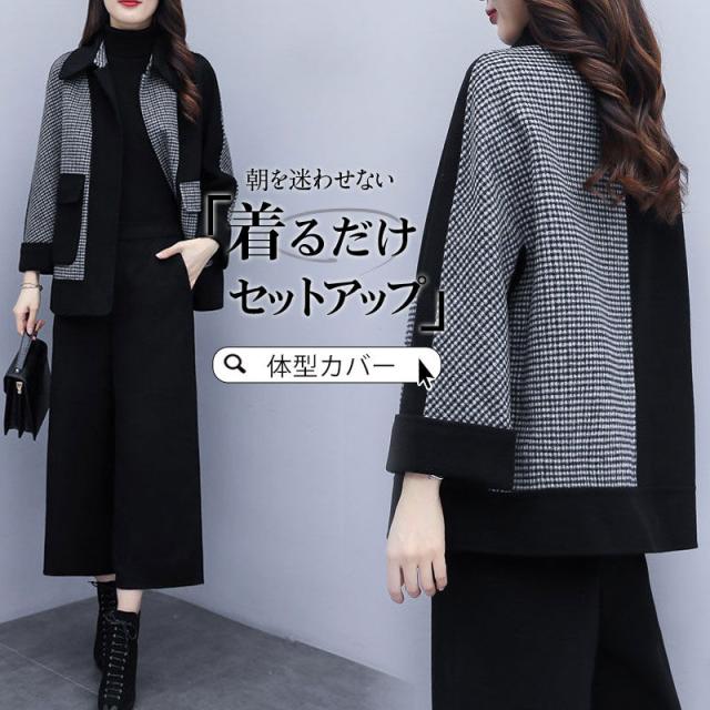 【水曜日まで!10%クーポン配布中】 セットアップ レディース フォーマル 春服 40代 上下セット ジャケット ワイドパンツ 体型カバー 卒業式 結婚式 セレモニース