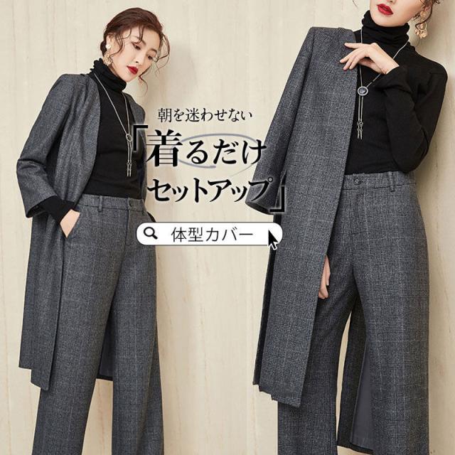 【水曜日まで!10%クーポン配布中】 セットアップ レディース フォーマル 春服 40代 上下セット ジャケット ロング丈 ワイドパンツ 体型カバー 卒業式 結婚式 セ