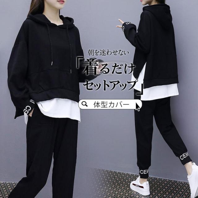 【水曜日まで!10%クーポン配布中】 セットアップ レディース 50代 40代 春服 上下セット スポーツ 重ね着 新作 冬 2点セット ママ 通勤 OL 部屋着 トッ