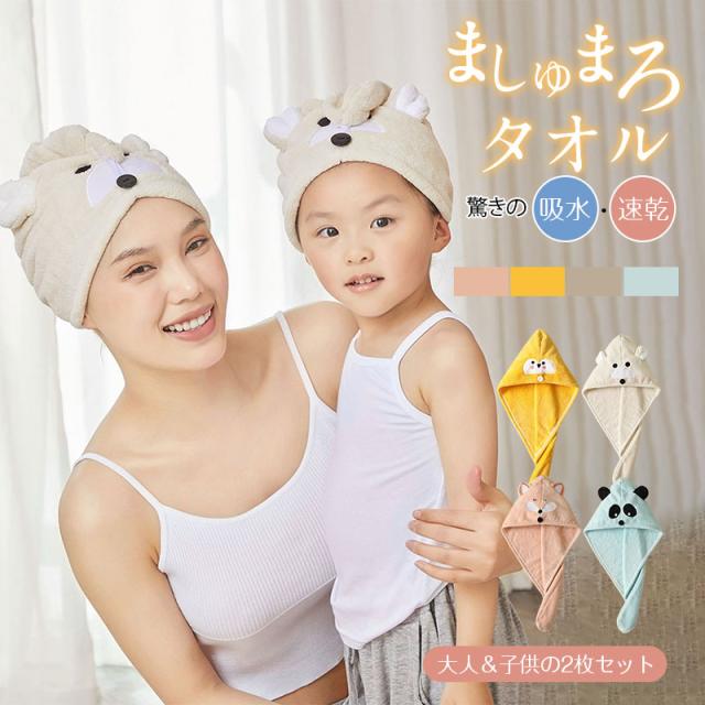 【水曜日まで!10%クーポン配布中】 ヘアタオル タオル 2枚セット 吸水タオル ヘアキャップ バスタオル タオルキャップ ふわふわ 速乾タオル 極厚 速乾 吸水 子ど
