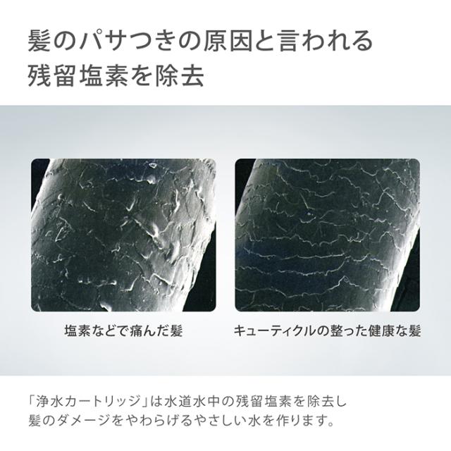 髪のパサつきの原因と言われる残留塩素を除去します。