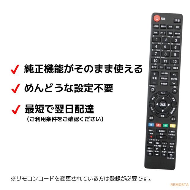 山善 キュリオム テレビ リモコン QRS-RC01 QRC-RC04 山善 Qriom QRS-50W2K QRS-43W2K QRS-40W2K QRS-32S2K QRS-24W2K QRC-50W4K QRC-58W4K QRC-24S2K QRC-50W2K QRS-60U4K QRS-49U4K QRS-49U4K2 代用リモコン REMOSTA