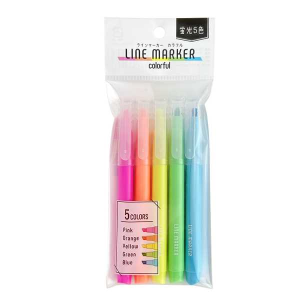 ラインマーカー カラフル 蛍光 5本入 (100円ショップ 100円均一 100均一 100均)
