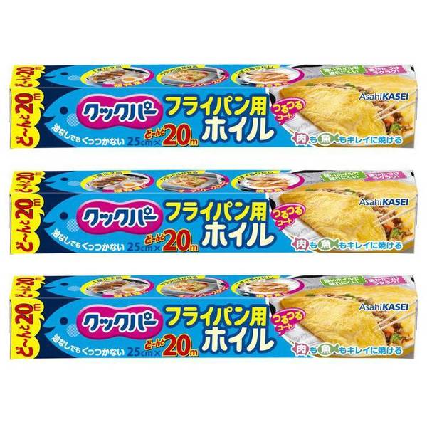キッチン 消耗品 ホイル 【3個セット】クックパー フライパン用ホイル 25CM×20M クックパー くっくぱー フライパン用ホイル シリコーン樹脂 アルミホイル くっつかない 片面シリコーン樹脂加工 料理 簡単 熱に強い