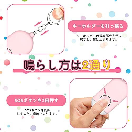 【簡単に操作できる二つの使い方】ブザーの鳴らし方(1):ピンを抜くと大音量のブザーが鳴ります。消したい時はピンを元に戻して下さい。ブザーの鳴らし方(2):SOSボタンを2回押すとブザーが鳴ります。消したい時はSOSボタンを長押しして下さい。