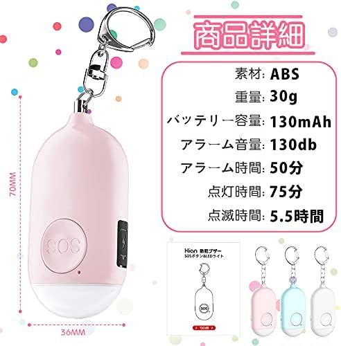 商品詳細: 素材:ABS 重量:30g バッテリー容量:130mAh アラーム音量:130db アラーム時間:50分 点灯時間:75分 点滅時間:5.5時間