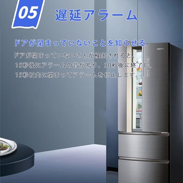 操作方法:Setボタンを押すとブザーが5回鳴る 作用:ドアが閉まっていないことが検出されると、15秒後にアラームが30秒のアラーム音で警告されます。