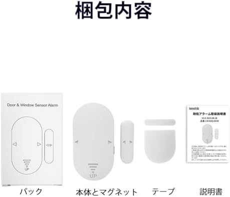 1.防犯アラーム(本体とマグネット含め) 2.3Mテープ 3.取扱説明書 マグネット感知式 操作方法:Setボタンを長押し 作用:音量が3段階調整 できます。