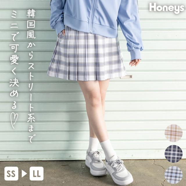 ボトムス スカート ミニスカート プリーツスカート レディース チェック柄 ツイル素材 韓国風 雑誌掲載 Honeys ハニーズ ミニプリーツスカート