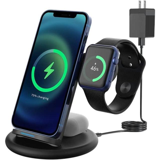 3in1ワイヤレス充電器 ワイヤレス充電スタンド Qi認定 最大15W高速無線充電器15W/10W/7.5W/5W マルチデバイス充電器 for 7/SE /6 /5 /4 /3 /2,for 13/12 /11 /XS MAX/XR/XS/X /8 /8 Plus/Samsung対応 18W急速充電アダプター付属