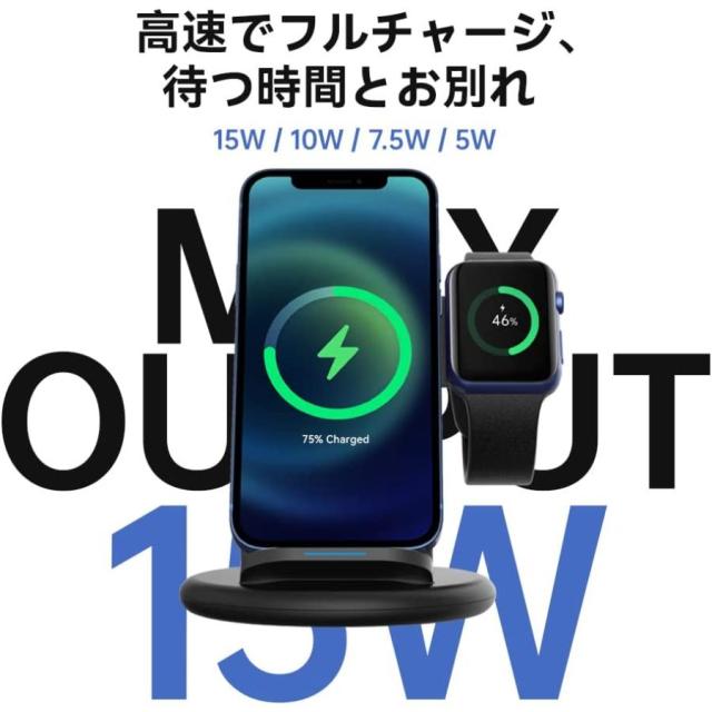 【最大15Wの急速充電】ワイヤレス充電器は、付属の18W急速充電アダプターとType-Cケーブルを使用し、より高速で安定した電源入力をサポートします。スマホの機種によって異なるが、5W/10W/15Wを支持し、最大15Wの充電スピードを提供します。ワイヤレスイヤホンの場合、2.5Wの充電出力を支持し、スマートウォッチの場合、5Wの充電出力を支持します。apple watch 2 / 3 / 4 / 5 / 6 / 7 /seのすべてのバージョンとのユニバーサル互換性。AppleWatchへの充電に限定。 (注:Samsungの時計の充電はサポートされていません。Samsungの時計への充電はできませんので、予めご了承ください。)