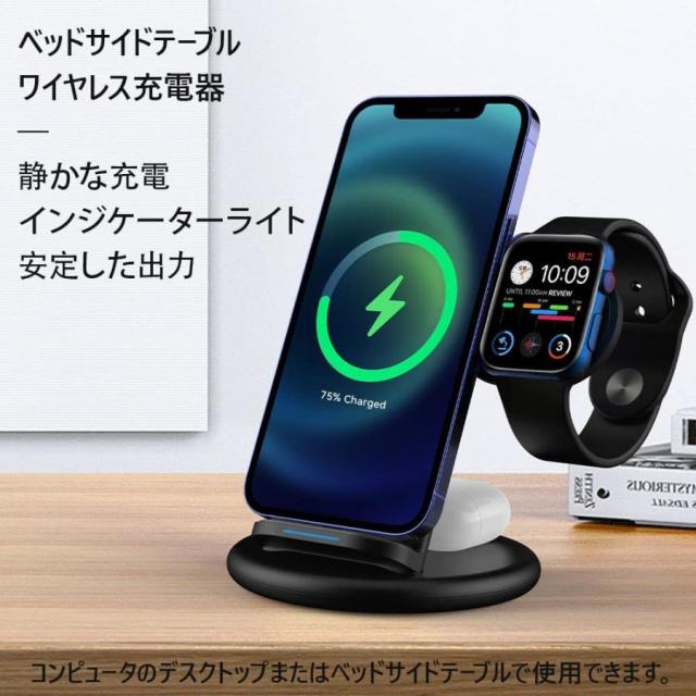 3in1ワイヤレス充電器 充電スタンド Qi認定 マルチデバイス充電器 18W急速充電器 急速充電 ワイヤレスチャージ Qiワイヤレス充電器 Qi充電器 アップルウォッチ