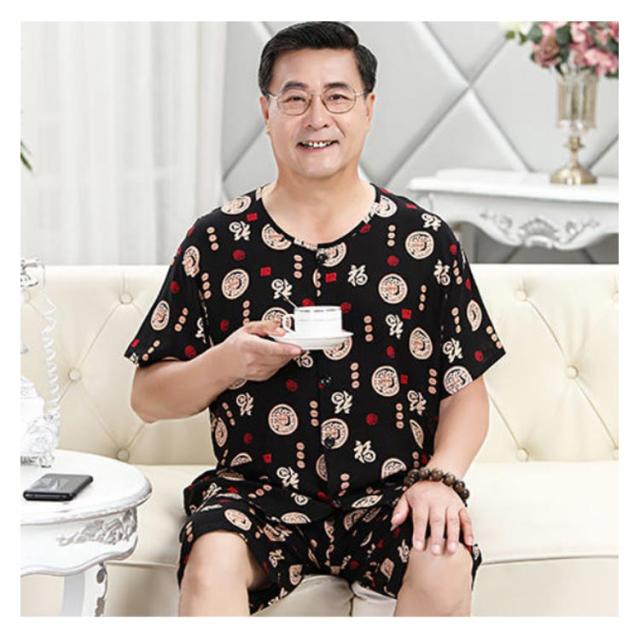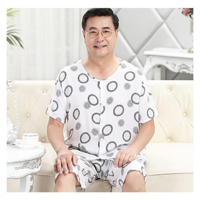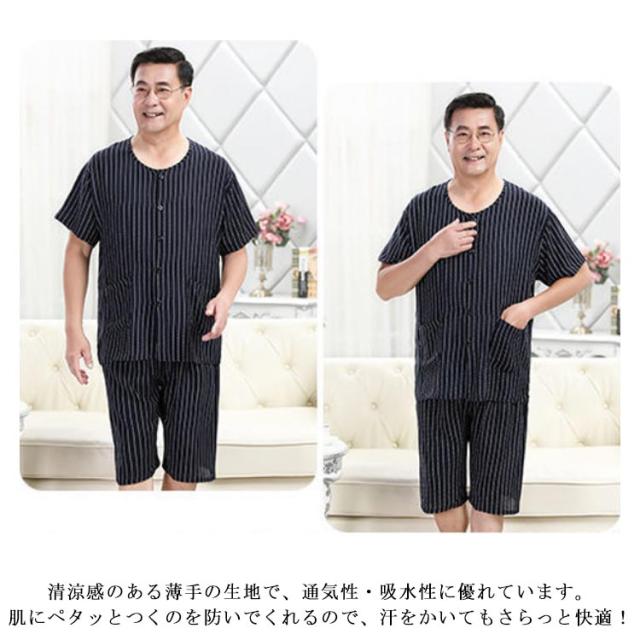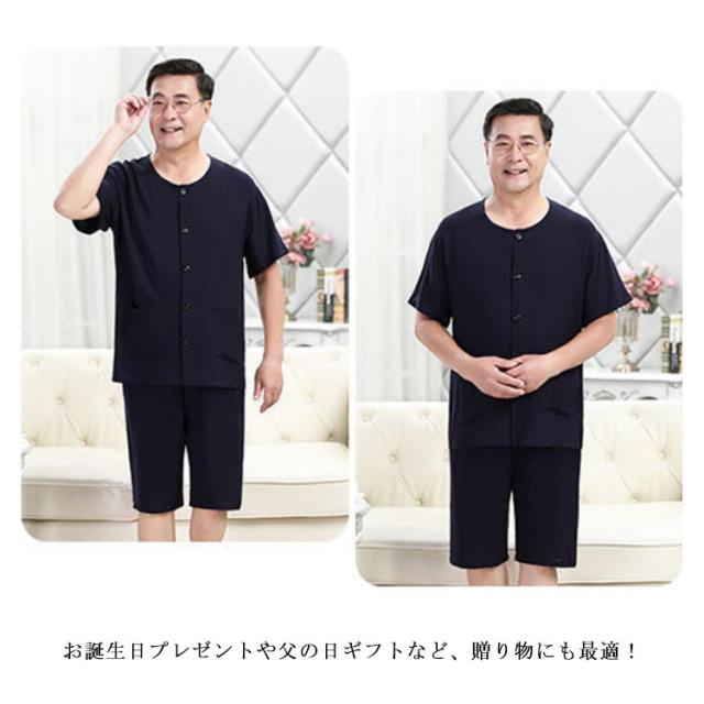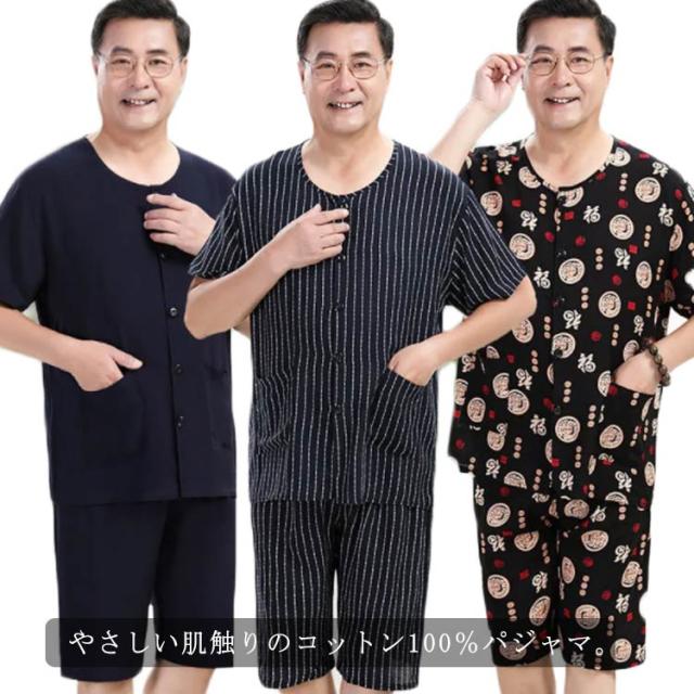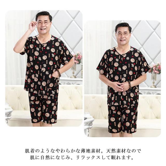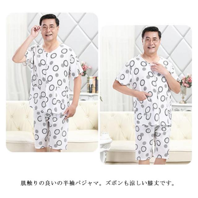半袖 100%綿 夏用 入院 【送料無料】パジャマ 涼感 メンズ 薄手 父の日 半ズボン 前開き 紳士 ノーカラー 男性用 L 敬老の日 ギフト プレゼント 総柄 Tシャツ 2L 半袖 3L 4L 5L 吸汗 速乾 丸首