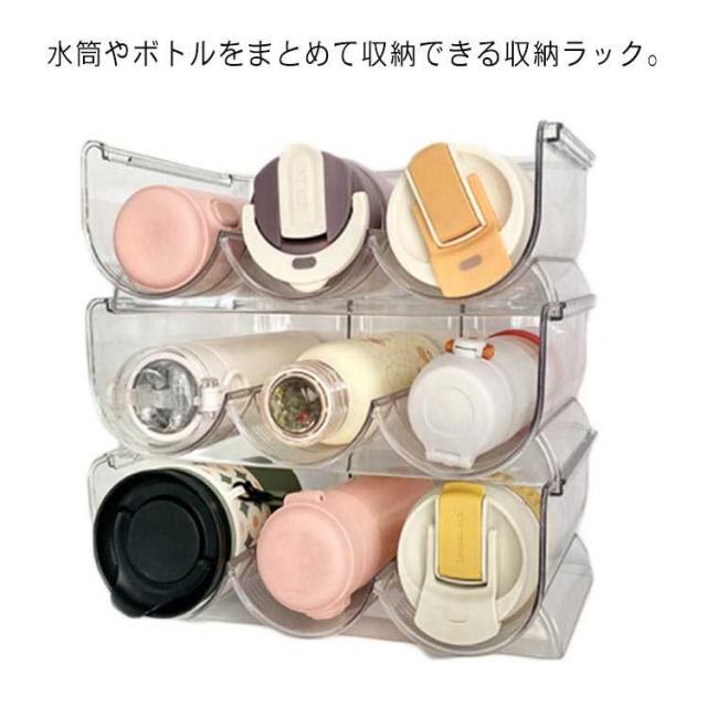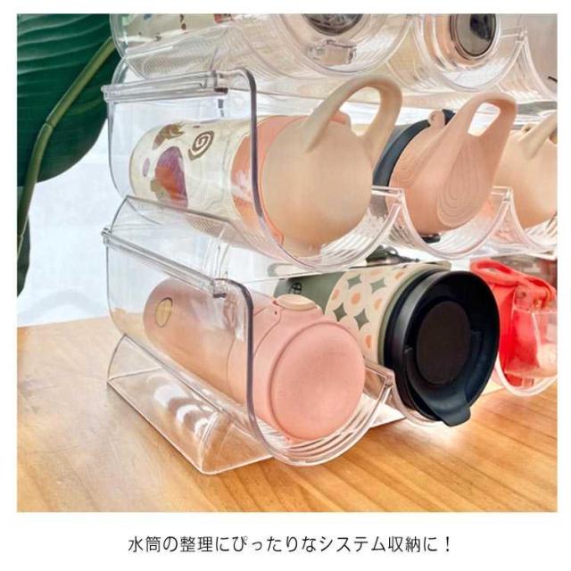 | 水筒やボトルをまとめて収納できる収納ラック。 積み重ねて収納!省スペースを実現。 水筒の整理にぴったりなシステム収納に! 透明なので、お部屋のインテリアにしっくり馴染みます。 底には脚付き、滑り止め機能があり、安定性抜群。 汚れても、拭き取れば比較的簡単に汚れが取れます。 | |