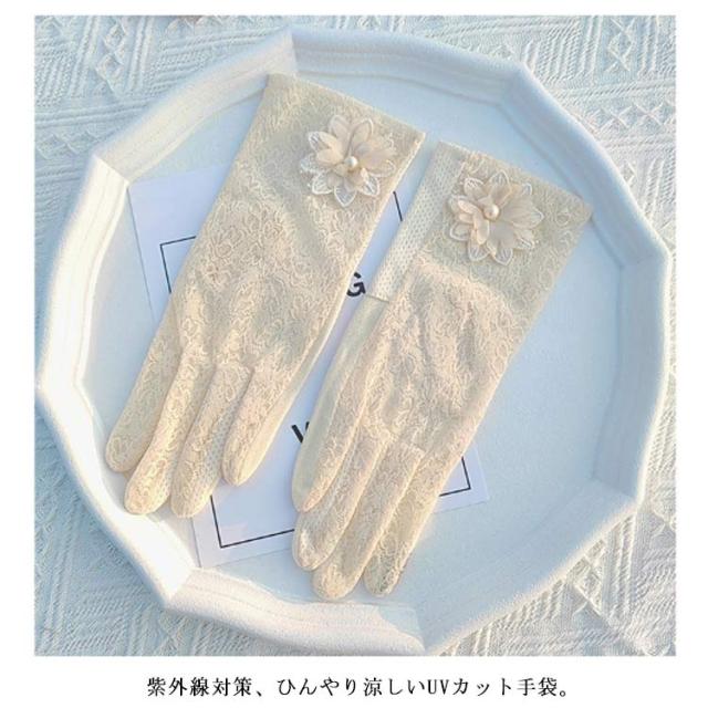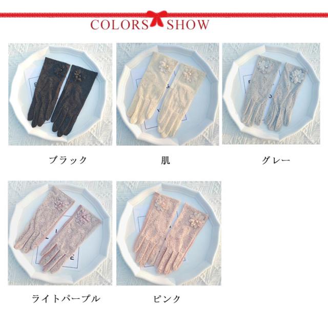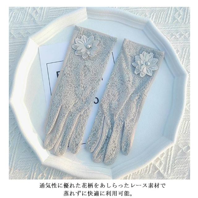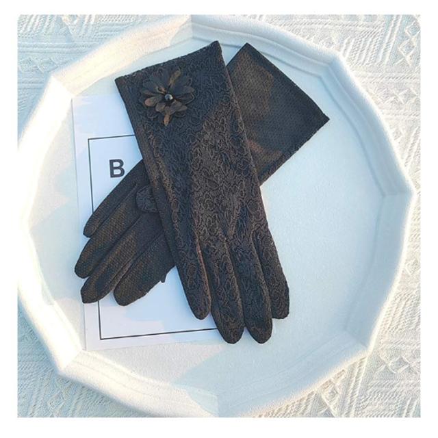 花柄レース スマホ対応 手袋 レディース 運転 滑り留め 夏用 紫外線対策 おしゃれ 自転車 日焼け防止 UVカット 五本指 薄手 メッシュ素材 速乾 花付き 接触 冷感 クール おしゃれ スポーツ おしゃれ