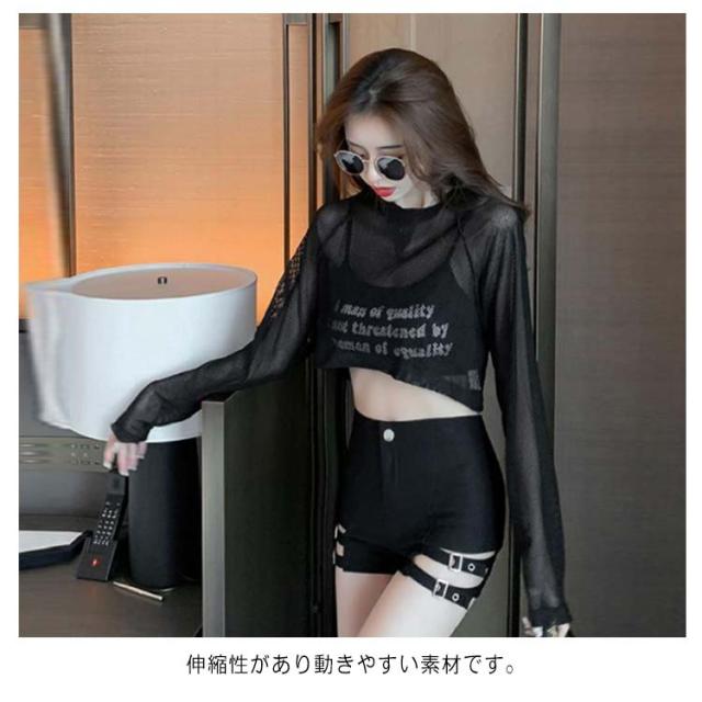 | 無地 ブラック シンプル 黒のダンス衣装をお探しならおすすめです! ショート丈 セクシーな 透け スタイル 伸縮性があり動きやすい素材です。 イベント、コンテスト、様々なジャンルのダンスの衣装に使えます。 | |