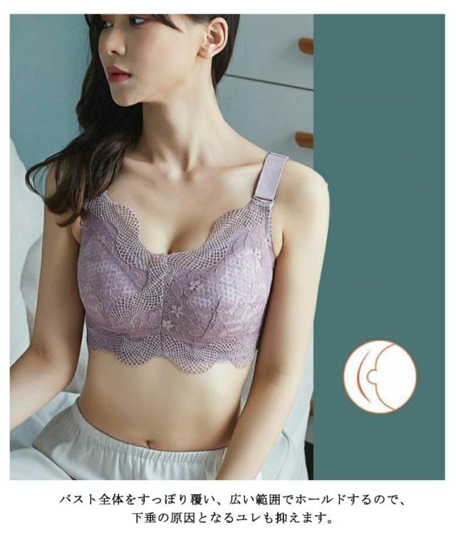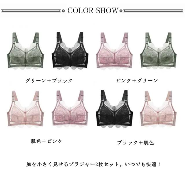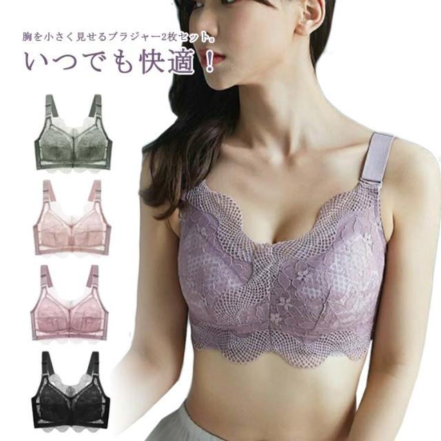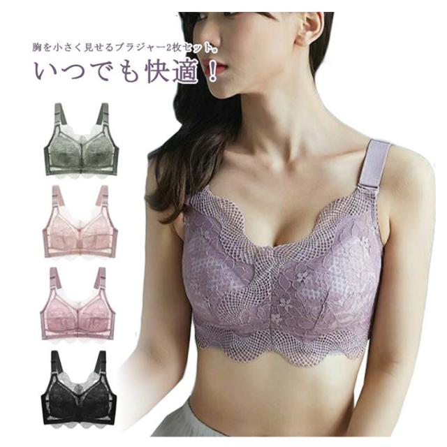 胸を小さく見せるブラ 総レース ブラジャー スマートブラ 2枚セット レディース 下着 花柄レース スマートブラ ブラジャー 薄手 脇肉補正 着痩せブラ 揺れない 脇高ブラ ノンワイヤーブラ