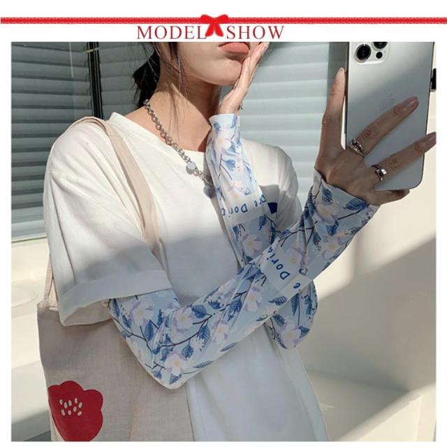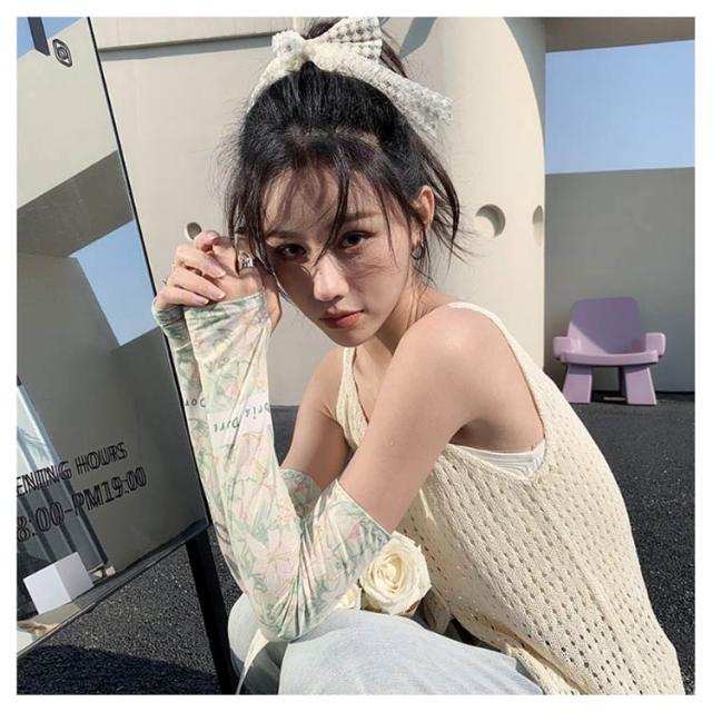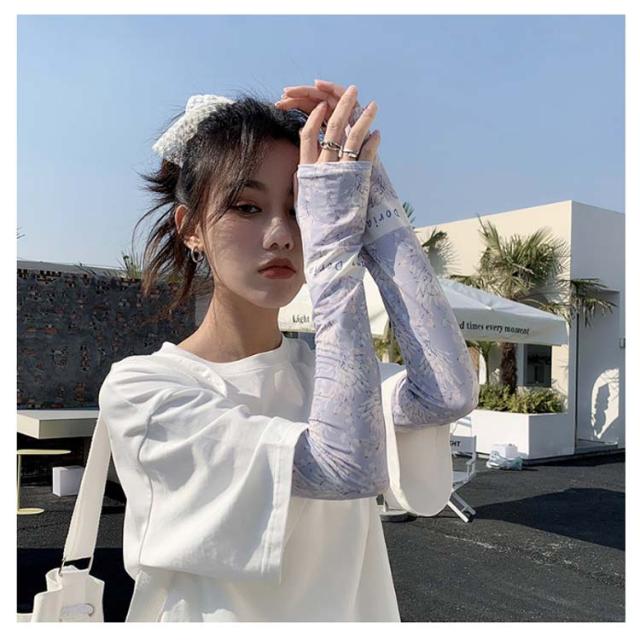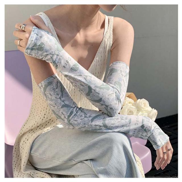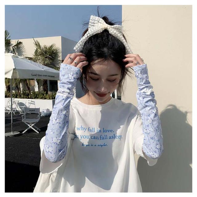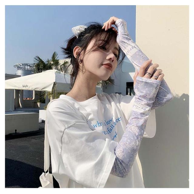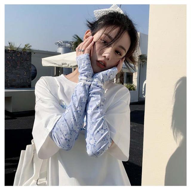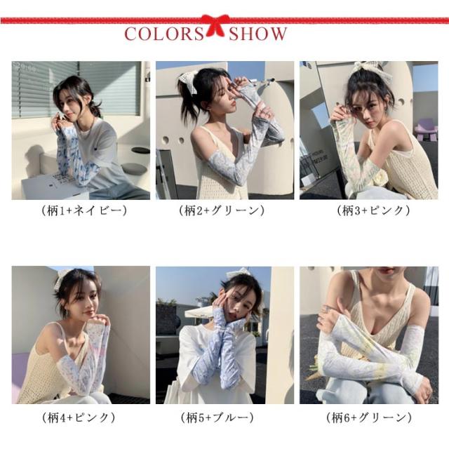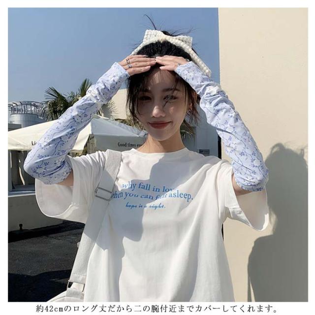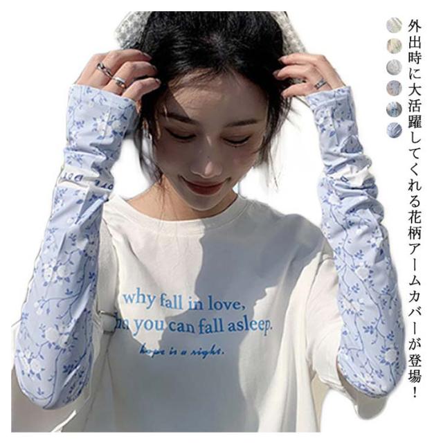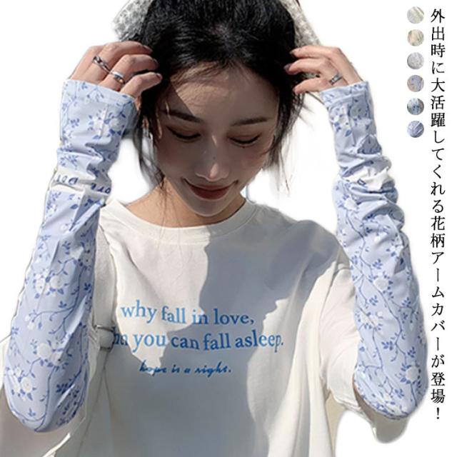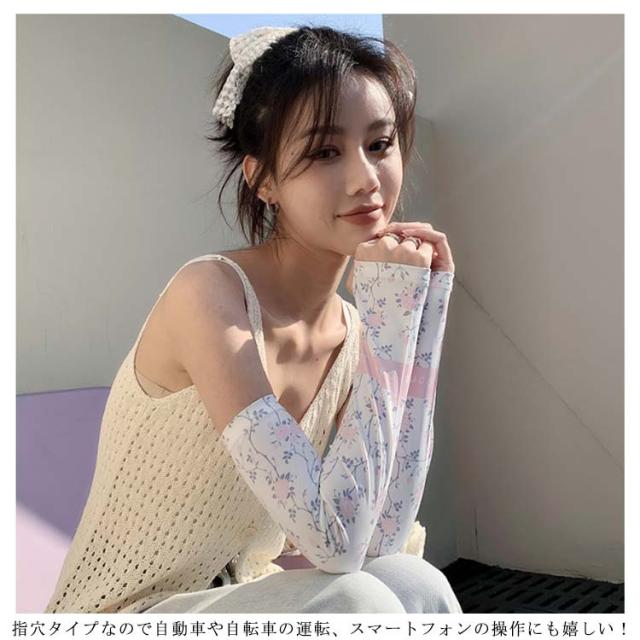 日焼け防止 UVカット レディース 送料無料 腕カバー 可愛い ストレッチ UV手袋 花柄 吸水速乾 アームカバー 紫外線対策 お出かけ 運転 車 自転車 涼感 指穴