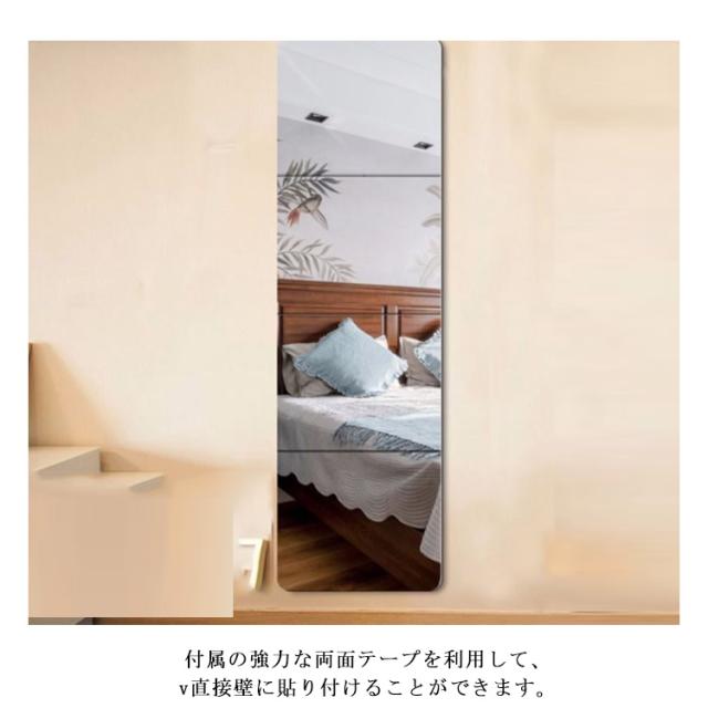 4枚セット 壁掛け 簡単貼り付け壁面ミラー ウォールミラー 貼る鏡 全身 33*33cm コンパクト 鏡 貼る 姿見鏡 省スペース 姿見 全身鏡 スタンド ダンス鏡 枠無し 玄関 リビング 飛散防止