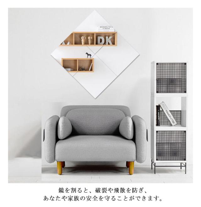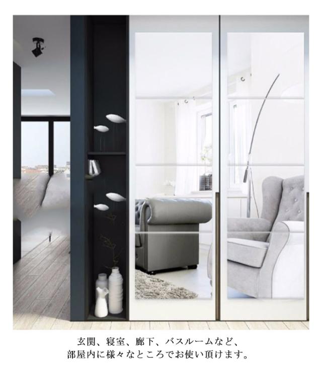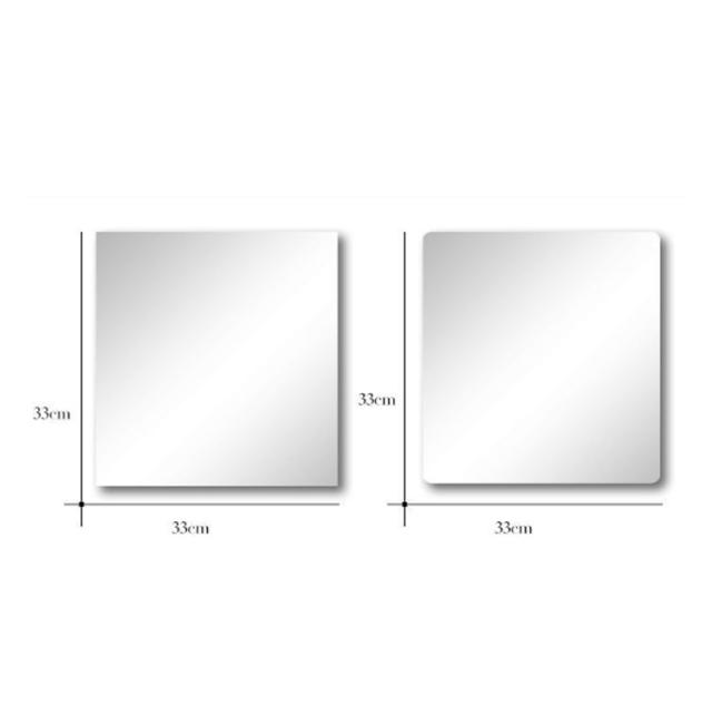| 辺長が33CMの正方形鏡4枚セット。 付属の強力な両面テープを利用して、直接壁に貼り付けることができます。 女性でも簡単に設置できます。 姿見ミラーには飛散防止フィルムを貼っております。 鏡を割ると、破裂や飛散を防ぎ、あなたや家族の安全を守ることができます。 玄関、寝室、廊下、バスルームなど、部屋内に様々なところでお使い頂けます。 | |