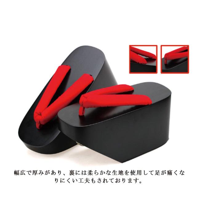 | サイズについての説明 | 22.5cm 22.5cm 24.5cm ※下駄・雪駄の履き方 鼻緒を指の又まで深く入れずつま先でひっかける様にして、かかとを少し出して履くのが「粋」な履き方とされています。 |