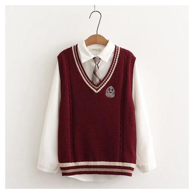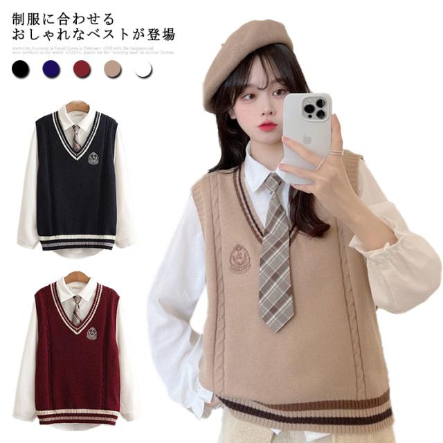 スクール スクールベスト 1枚だけでコーデ完成! Vネック ニット レッド 男女兼用 制服 チョッキ ノースリーブ セーター 高校 ホワイト 学校 JK 通学 学生服 中学 ニットベスト スクールニット JK制服 ベージュ ブラック ネイビー モカ 無地