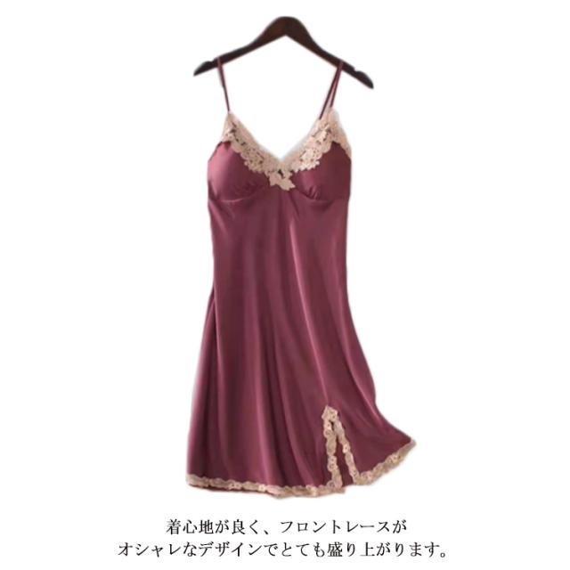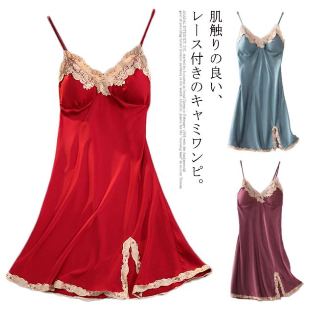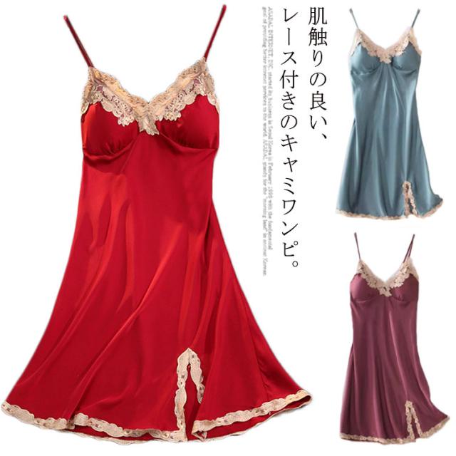 | 肌触りの良い、レース付きのキャミワンピ。 光沢があり滑らかな質感が、動くたび華やかで、女性らしい印象に。 アジャスター付きで肩紐は自由に長さ調整をすることが可能。 着心地が良く、フロントレースがオシャレなデザインでとても盛り上がります。 | |