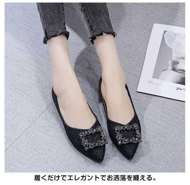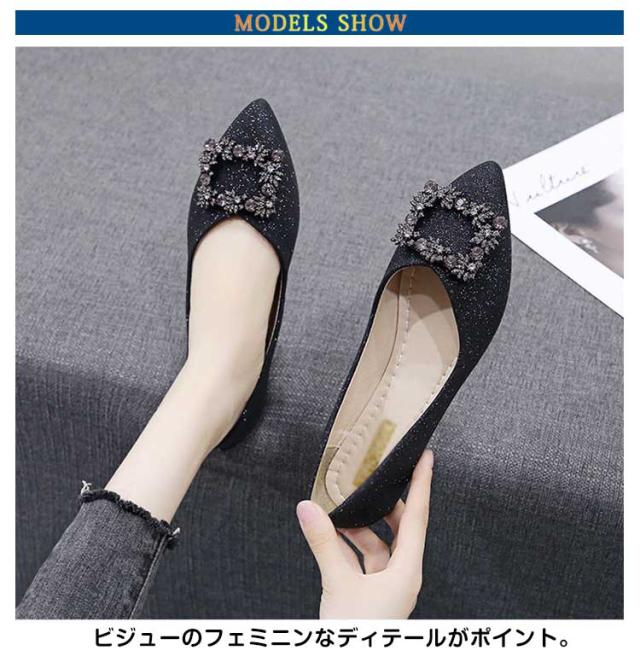 シューズ ビジューパンプス レディース 靴 歩きやすい ライトストーン 大人 シンプル パンプス
