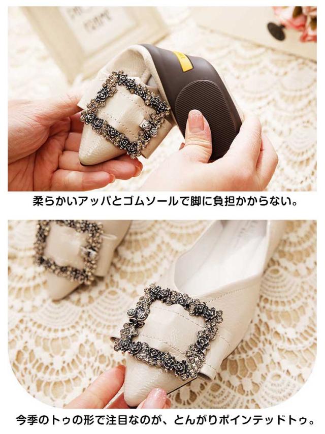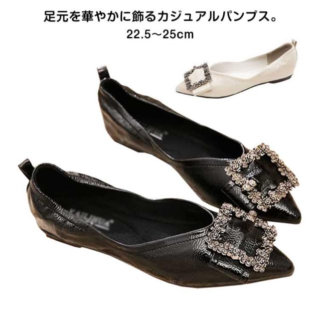 オフィス ビジュー ぺたんこ パーティー レディース パンプス ローヒール ポインテッドトゥ フラットパンプス 歩きやすい 冠婚葬祭 卒業式 キラキラ フラット 卒園式 結婚式 Vカット