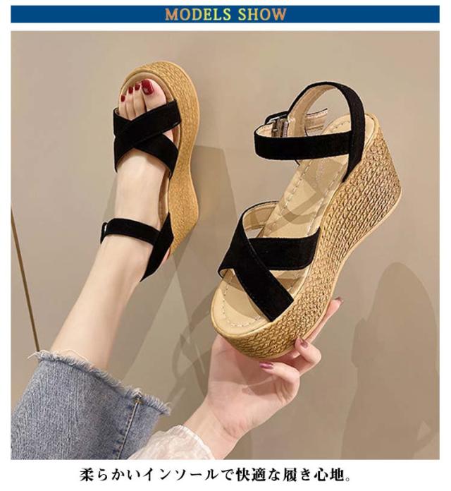 黒 レディース サンダル 厚底 ウェッジソール リラックスサンダル コンフォートサンダル オフィス サボサンダル つっかけ 疲れない 美脚 クッション ヒール 歩きやすい