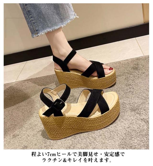 | 可愛いウェッジサンダル。 柔らかいインソールで快適な履き心地。 程よい7cmヒールで美脚見せ・安定感でラクチン&キレイを叶えます。 夏らしいウェッジソールでオシャレ度を格上げします。 軽量で滑り止め機能付きソール。 | |