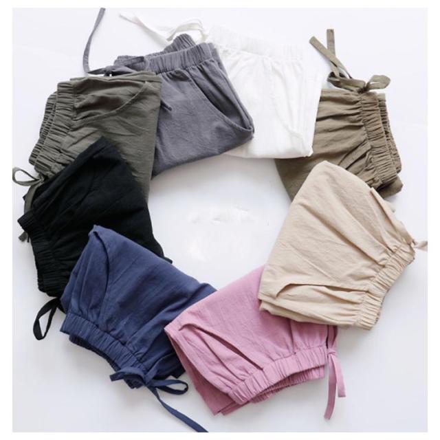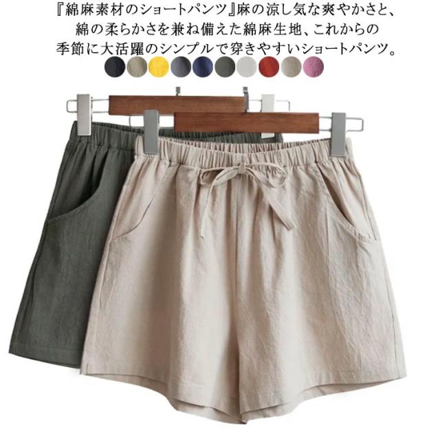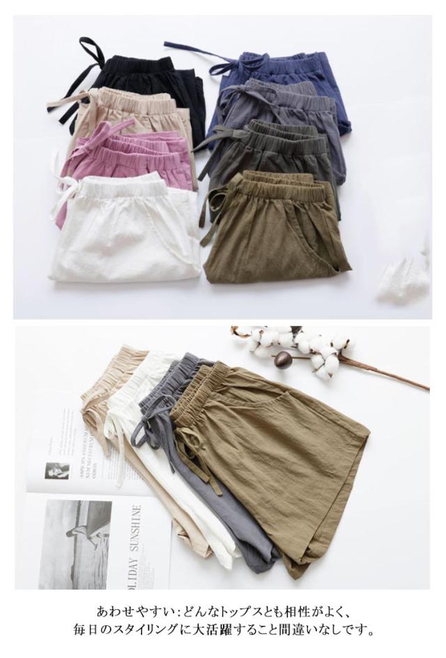 レディース ゆったり リネンパンツ 大きいサイズ ワイドパンツ ゆるパンツ 短パン ウエストゴム 紐付き ボトムス ショートパンツ 涼しい スウェットパンツ 薄手 ルームウェア 夏物 短パン