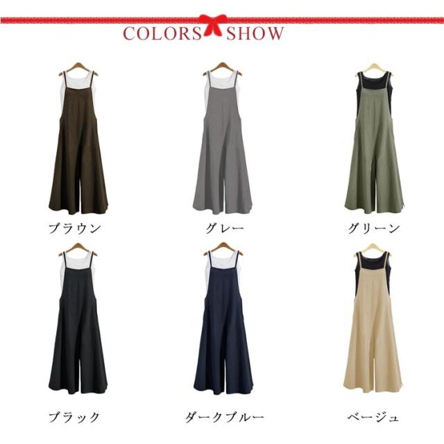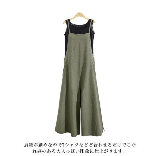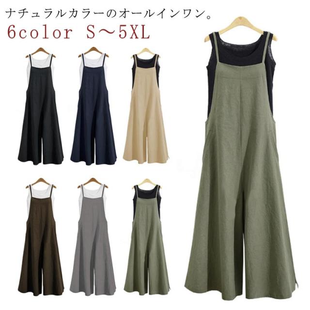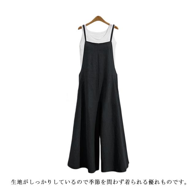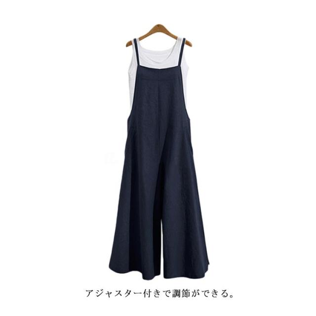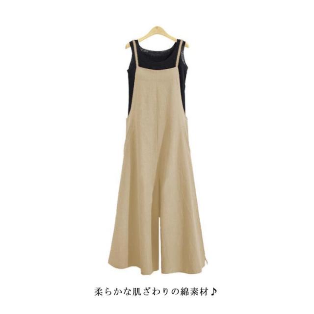 オールインワン レディース キャミ 無地 パンツ スリット 大きいサイズ サロペット 綿 ガウチョ スカンツ きれいめ 着痩せ 体型カバー キャミワンピース ワイドパンツ