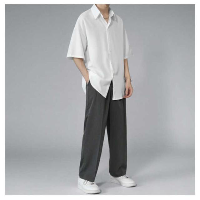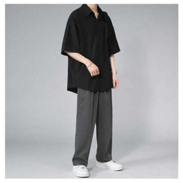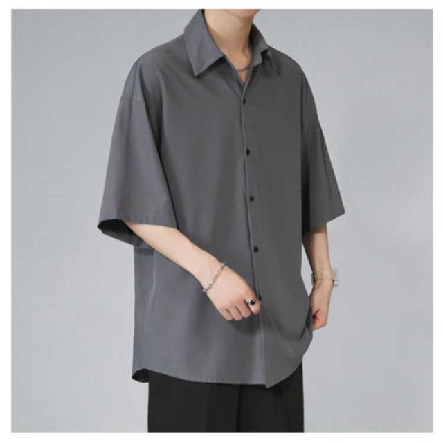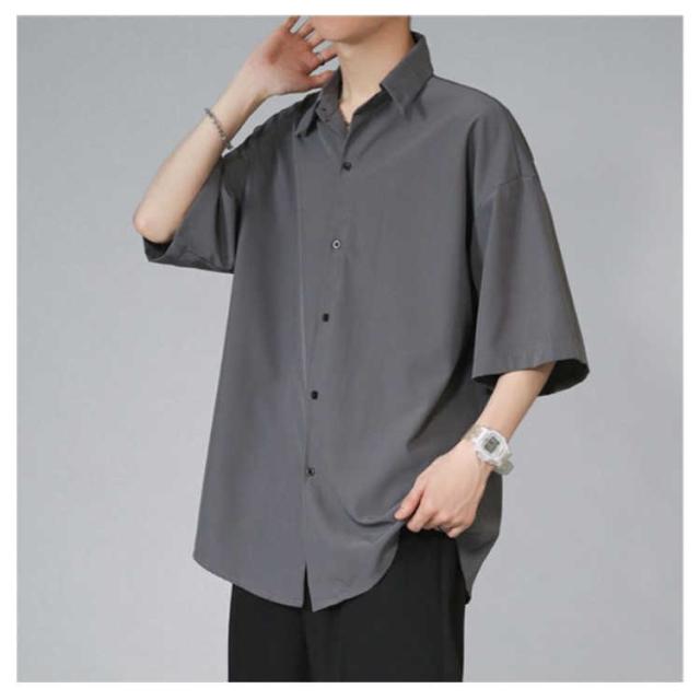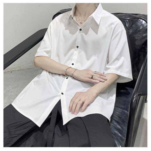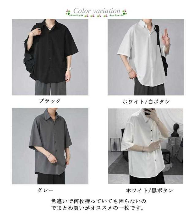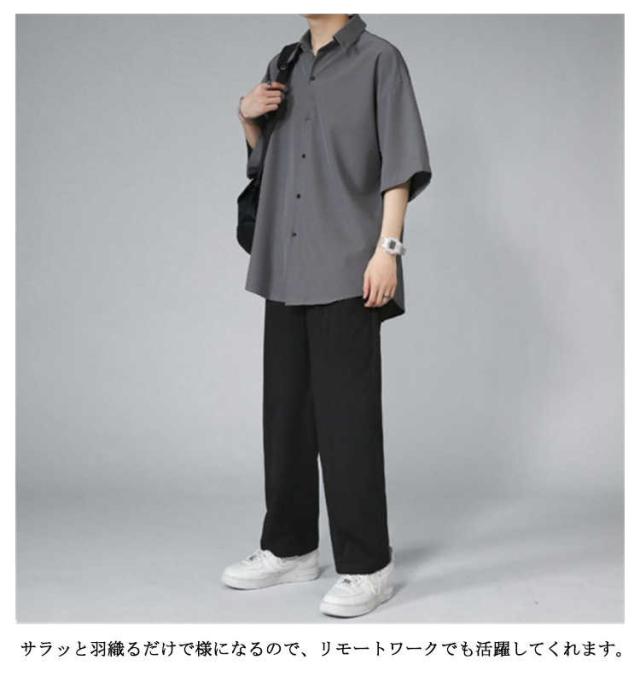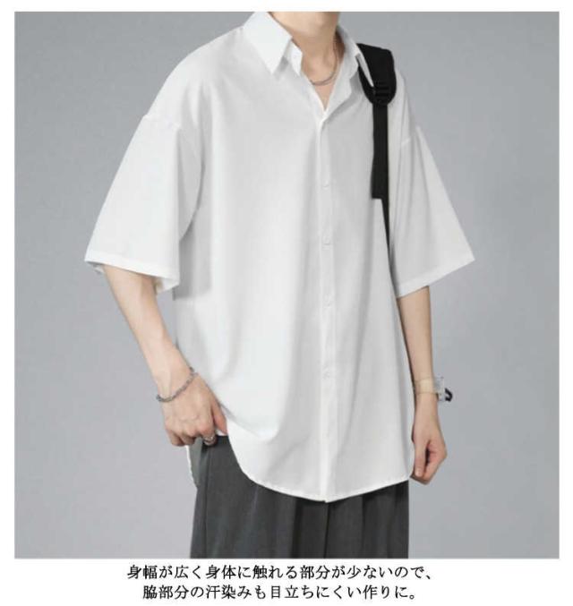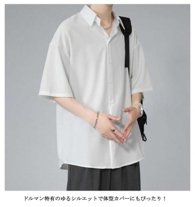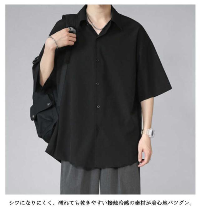 メンズ とろみ 半袖 シワにならない ドルマン ビッグシルエット オーバーサイズ シャツ 接触冷感 無地 半袖シャツ オーバーサイズ 半袖シャツ ロングシャツ ビッグシャツ シャツ 父の日 アメカジ ギフト ストリート 涼しい