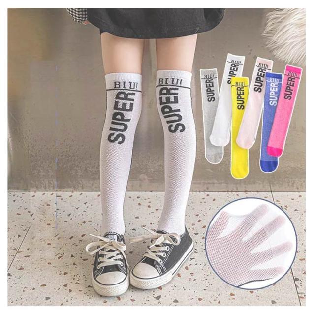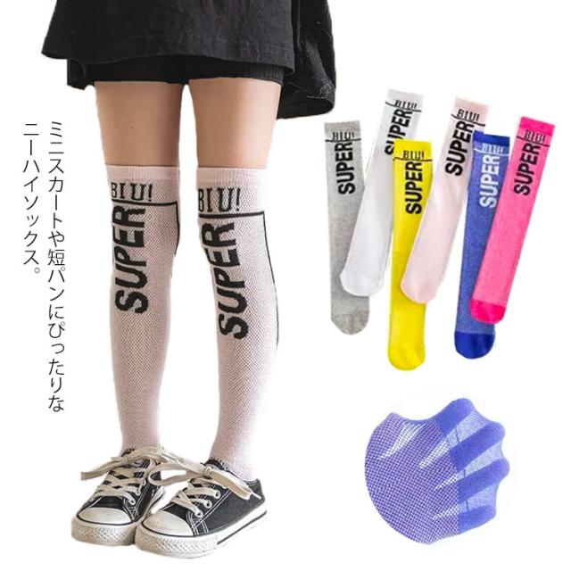 ハイソックス ジュニア 男女兼用 レディース カラフル ネオンカラー 派手 単色 シースルー メッシュ 防虫 超薄型 メッシュ素材 ハイソックス 清涼感 通気性 吸汗性 ダンス ポップ スポーツ 虫よけ 子供 キッズ ジュニア 通学 送料無料