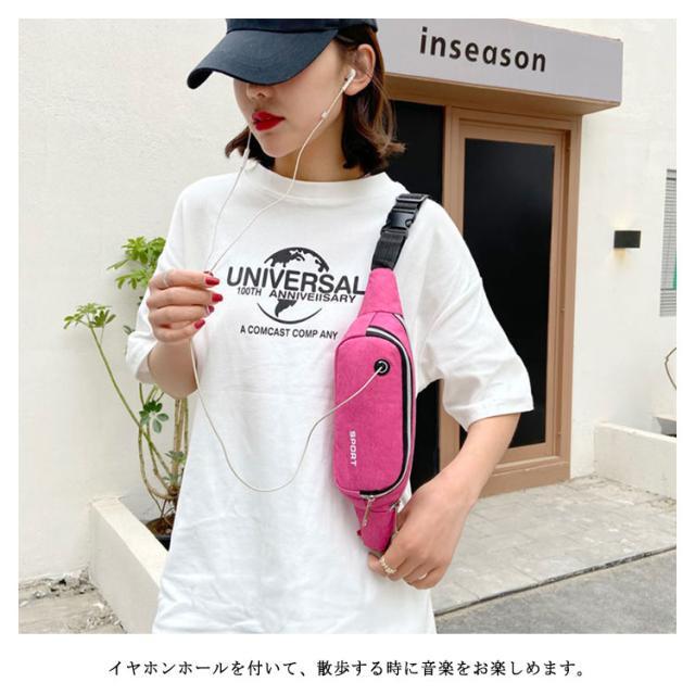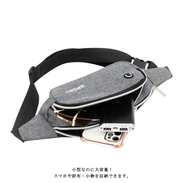 ウエストバッグ メンズ キャンバス スポーツ ランニング スマホポーチ チェストバッグ レディース 軽量 防水 ボディバッグ ウォーキング 小さめ 斜めがけ ポーチ イヤホン穴付き?USB充電ポート付属?送料無料