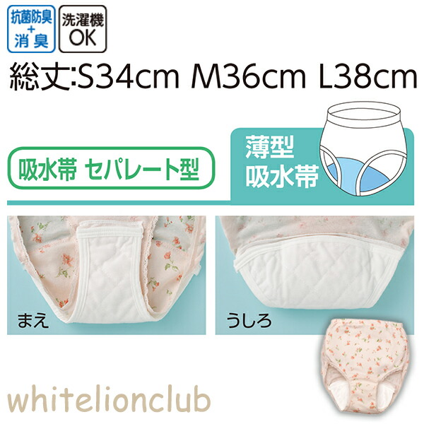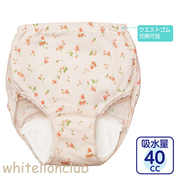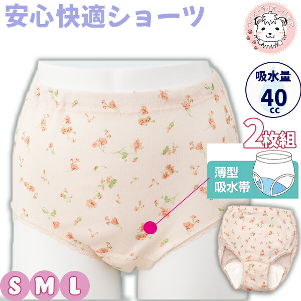 花柄 失禁ショーツ 2枚組 安心快適ショーツ 抗菌 防臭 消臭 綿100% 吸水量40cc S/M/L | 吸水ショーツ 婦人用 快適 安心 ショーツ 失禁パンツ 介護用 入院 病院