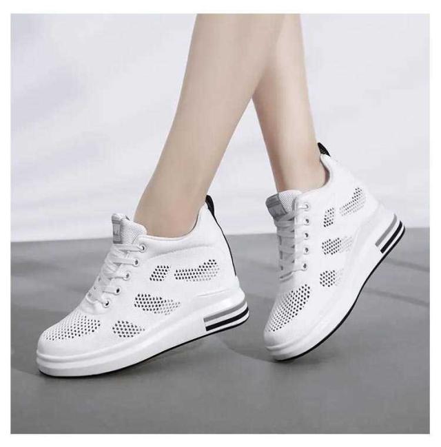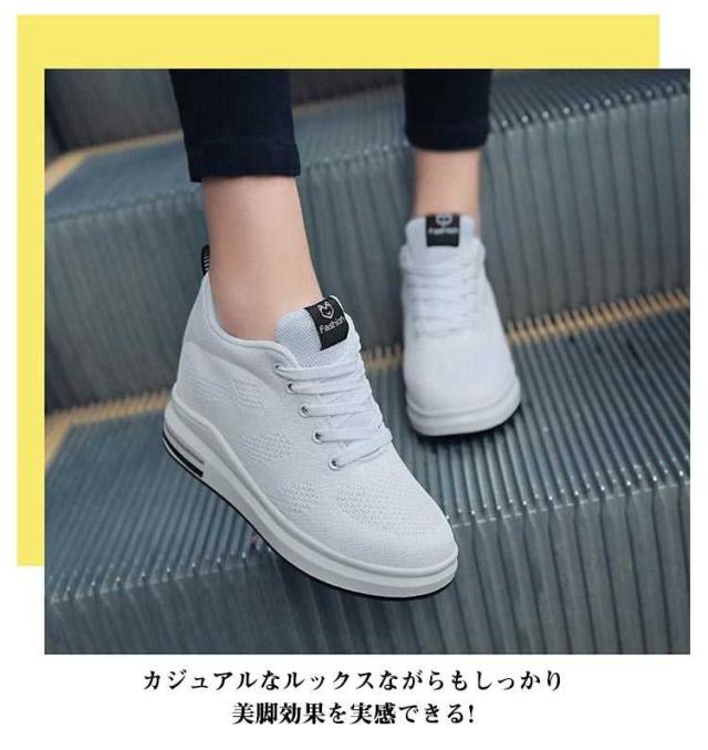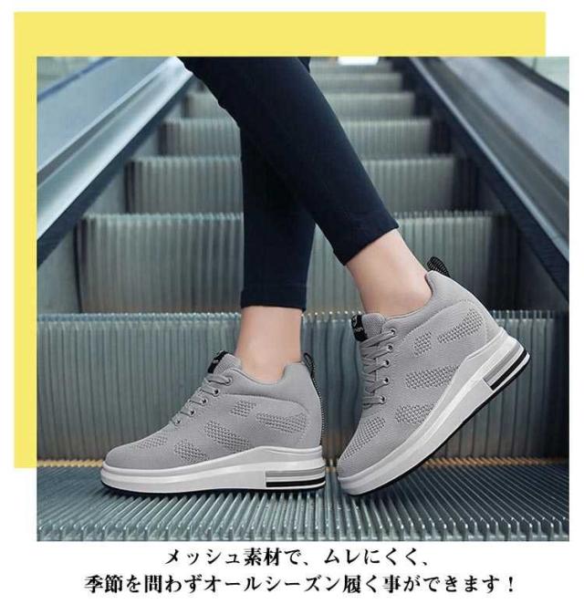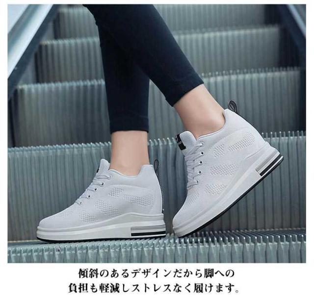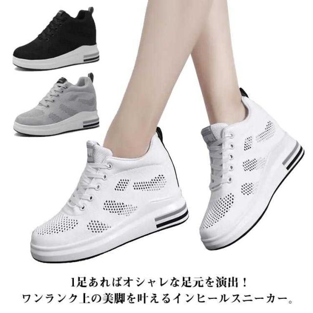 8cm身長アップ! 厚底スニーカー 8cm ウェッジヒール ヒールスニーカー レディース 美脚 ローカット インヒールスニーカー ヒールアップ 厚底シューズ レースアップ メッシュ 軽量 疲れにくい シークレットシューズ