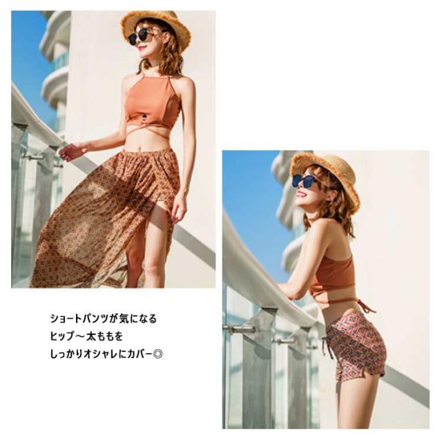 | スカート付きビキニ3点セット。 ブラジャー+ショートパンツ+スカート。 魅力的なデザインで存在感バツグン。 肩ひも調節可能。 華奢魅せ&体型カバーが叶う! ショートパンツが気になるヒップ〜太ももをしっかりオシャレにカバー◎ | |