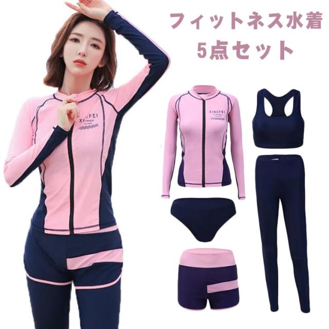 水着 レディース 上下セット フィットネス 長袖ラッシュパーカー 体型カバー セパレート 5点 タンクトップ タンキニ レギンス ショートパンツ ボタニカル 露出控えめ カバーアップ かわいい お洒落 送料無料