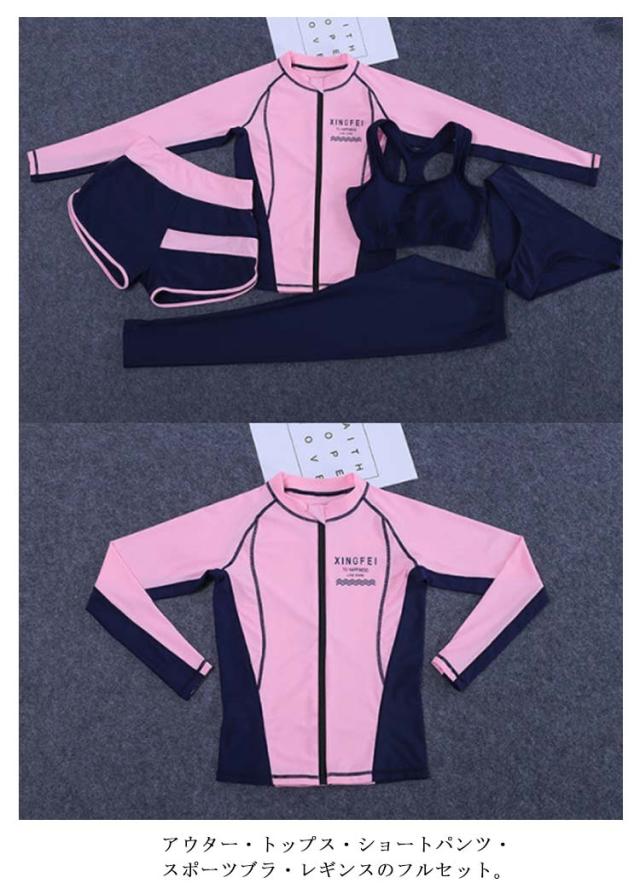 | しっかりカバーできるフィットネス水着5点セット。 アウター・トップス・ショートパンツ・スポーツブラ・レギンスのフルセット。 露出を抑えて日焼け対策に。 パッドは入れ替えや取り外しは可能。 海やビーチだけでなくフィットネス、ヨガ、ジムでのトレーニング、レジャーなど様々なシーンで活躍間違いなし! | |