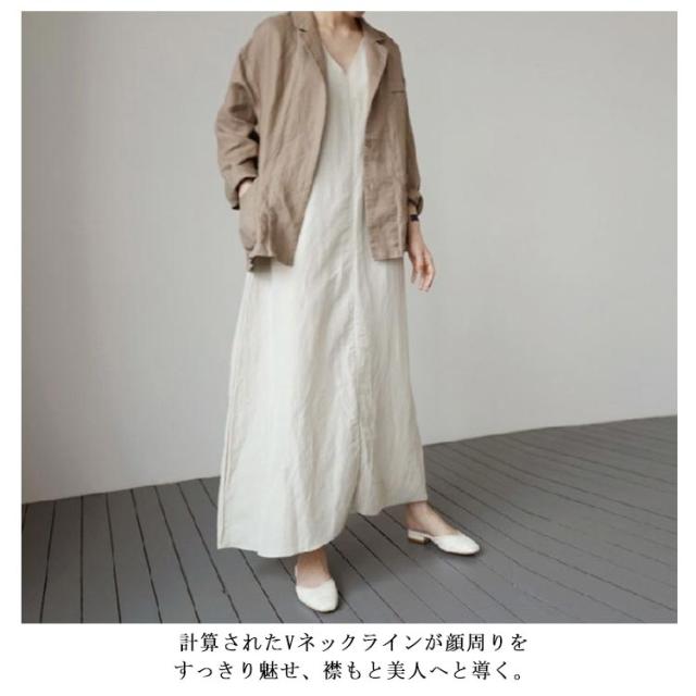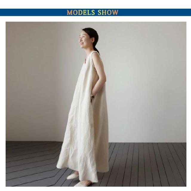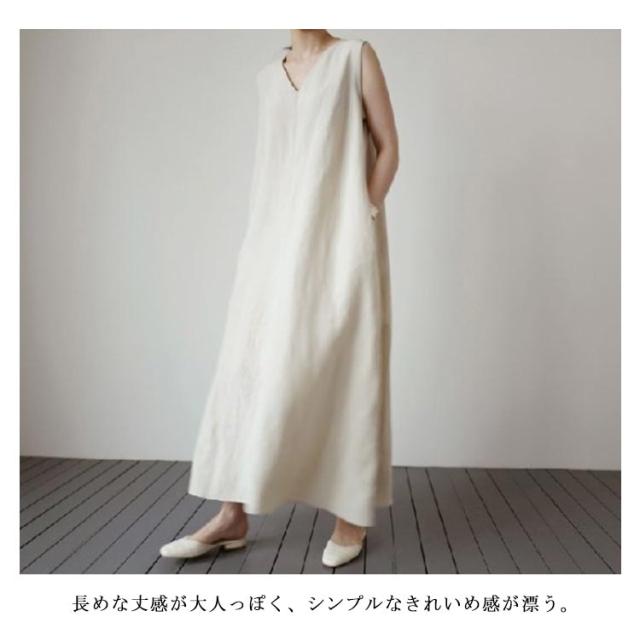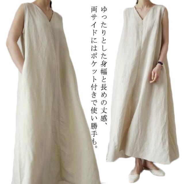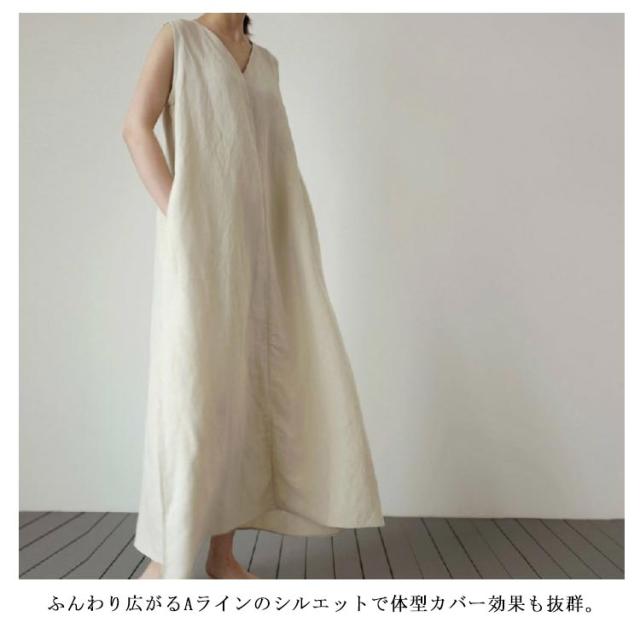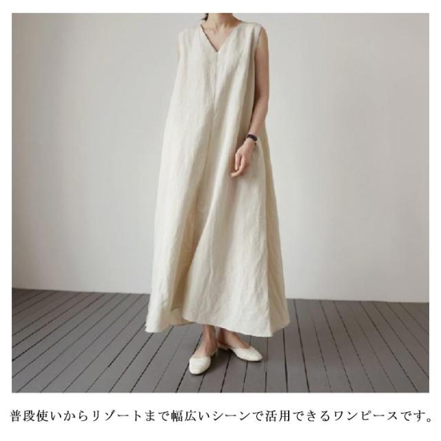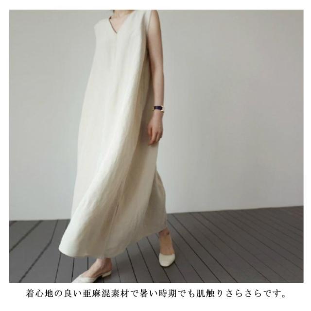 亜麻混 ワンピース 春夏 きれいめ ロング丈 レディース リネン 体型カバー マキシワンピース ノースリーブ タンクトップワンピース 無地 ゆったり Vネック カジュアル おしゃれ 大人可愛い Aライン シンプル 送料無料