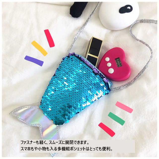 | かわいいマーメイドのしっぽがきらきらショルダーポシェットです! スパンコールがおしゃれでかわいい。 ファスナーも軽く、スムーズに開閉できます。 スマホもや小物も入る多機能ポシェットはとっても便利。 お誕生日(バースデー)・お祝い、記念日、こどもの日、プレゼント交換など特別な日の贈り物 贈答品としてもおすすめです。 | |