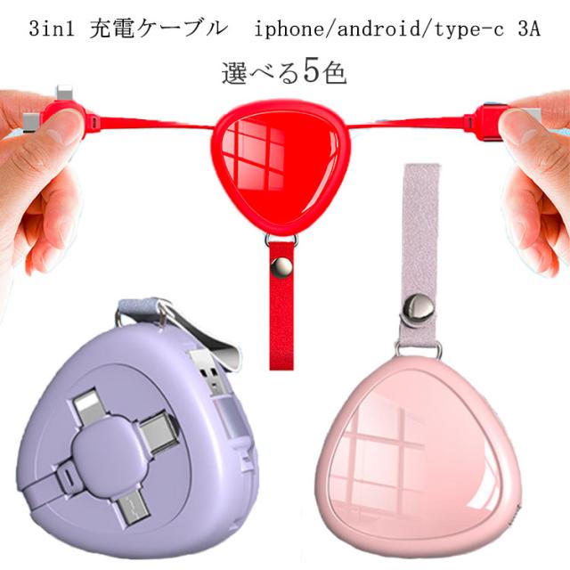 iphone充電器 タイプC ライトニングケーブル 巻き取り アイフォン充電ケーブル 3a急速充電 ル/Micro/Type c iPhone 13/13mini/promax 充電ケーブル USBケーブル USB Type-c 巻取り充電 Android アンドロイド ケーブルiPhone XS MAX 8 7 Lightning microUSB 充電コード