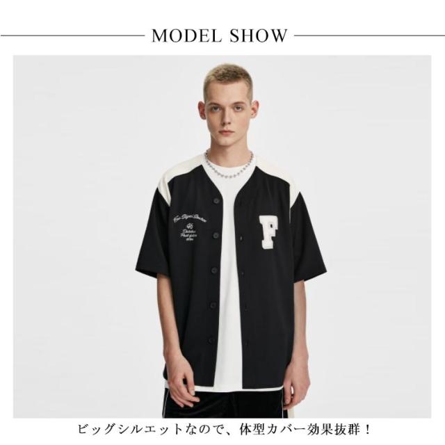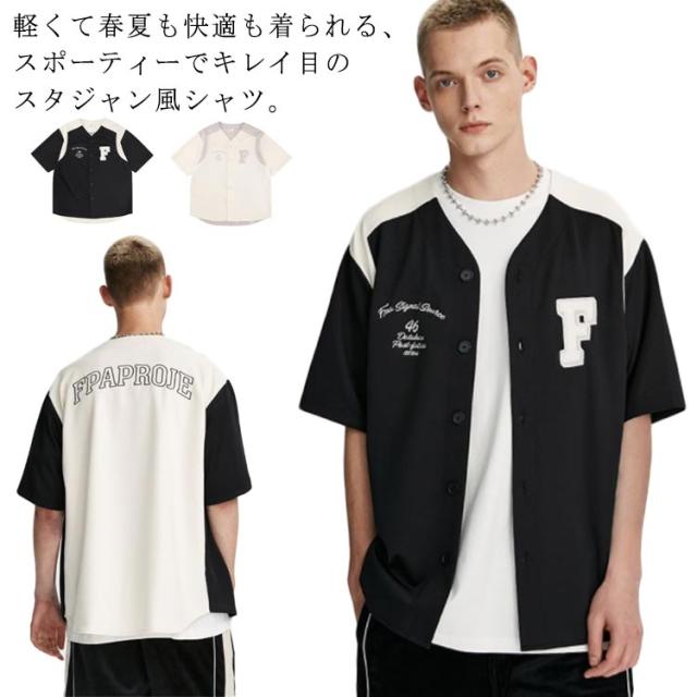 スタジャン 半袖 パーカー メンズ 夏服 Tシャツ 薄手 ビッグシルエット 英字 ノーカラーシャツ シャツジャケット アメカジ メンズファッション S M L XL 2XL 3XL