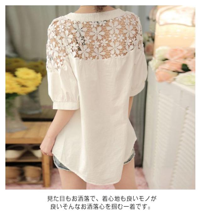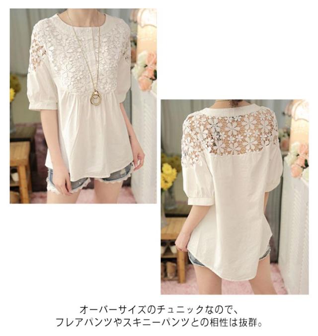 レース チュニック 半袖チュニック レースチュニック 花柄レース 刺? トップス シャツ クルーネック 5分袖 ボリュームスリーブ シースルー レース切り替え フリル フレア ギャザー カットソー 薄手 大人 上品 きれいめ 送料無料