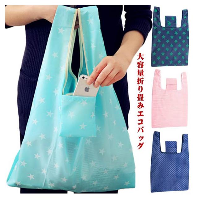 エコバッグ 折りたたみ コンパクト おしゃれ レディース メンズ エコバッグ 折りたたみバッグ コンパクト 防水 マザーズバッグ 軽量 大 大容量 コンビニ 丈夫 簡単 オシャレ ショッピングバッグ 大きい 折り畳み 星 ボーダー ドット柄 おすすめ 安い