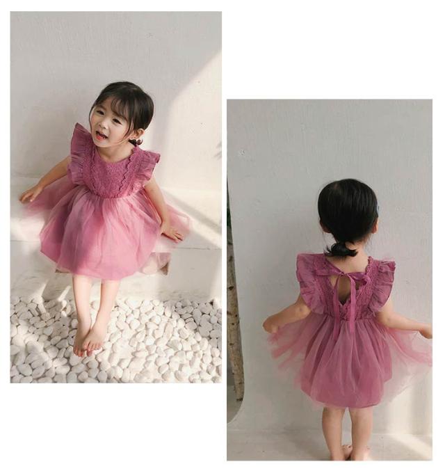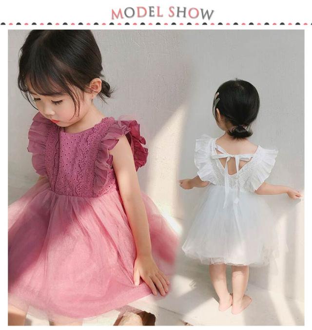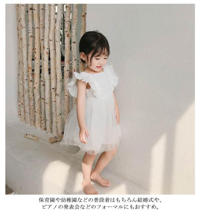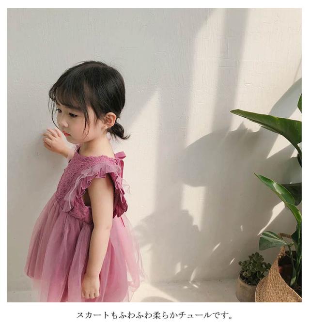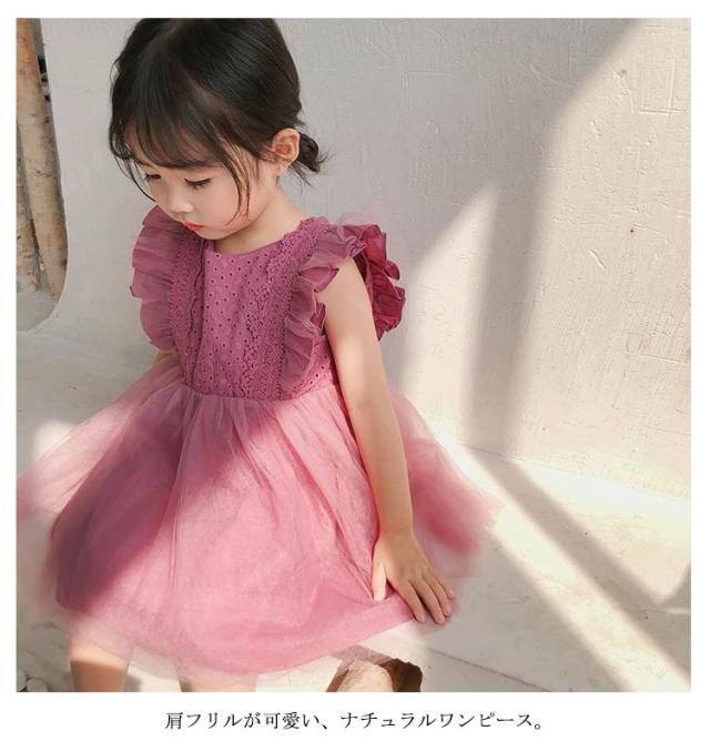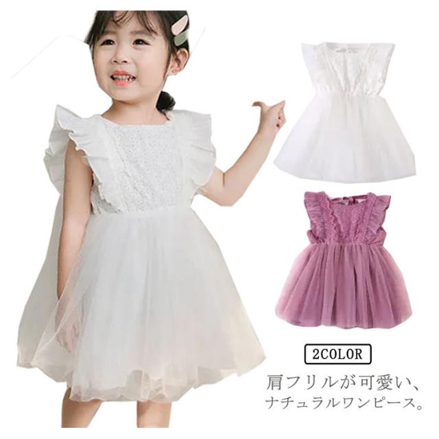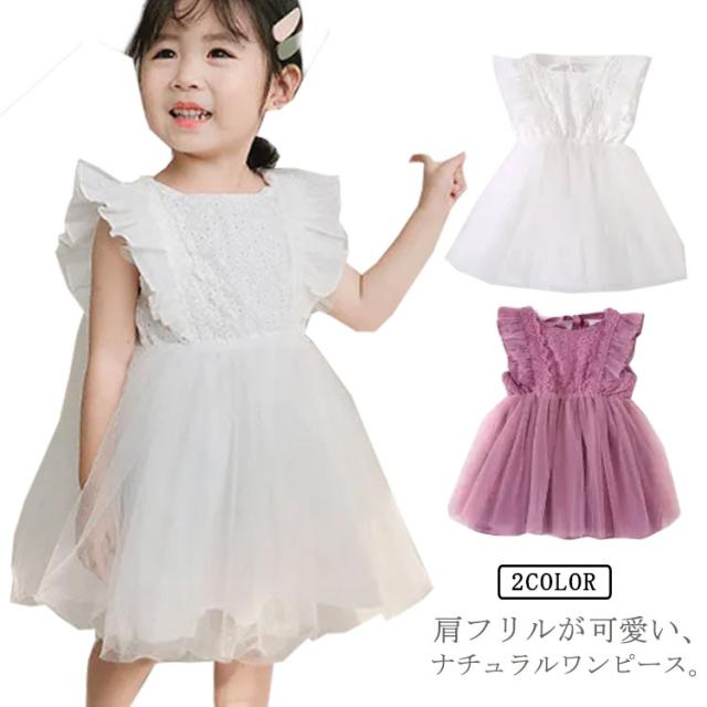 チュール 子供服 肩フリル ワンピース レース 発表会 夏服 かわいい こども服 子ども服 誕生日 ノースリーブ 結婚式 カジュアル パーティー 通園 通学 女の子