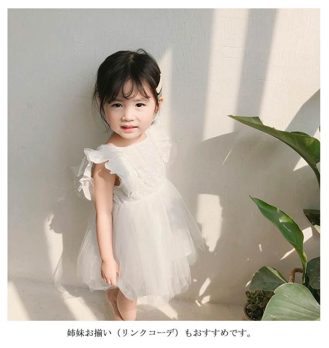 | 肩フリルが可愛い、ナチュラルワンピース。 スカートもふわふわ柔らかチュールです。 保育園や幼稚園などの普段着はもちろん結婚式や、ピアノの発表会などのフォーマルにもおすすめ。 姉妹お揃い(リンクコーデ)もおすすめです。 | |